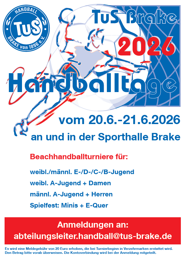 Aktuelle News findet ihr auf unseren Social Media Seiten Facebook Instagram Gegründet Mannschaften Mitglieder 0 + Gemeinschaft Wir sind 1! Seniorenspiele Jugendspiele Ohne euch läuft nichts! Alle Sponsoren Schau vobei und werde Teil der Handballabteilung des TuS Brake! Wir sind 1 - Tus Brake Handball MENU Home Impressum Datenschutz © Alle Rechte vorbehalten. 2026 SOCIAL Facebook-f Instagram
